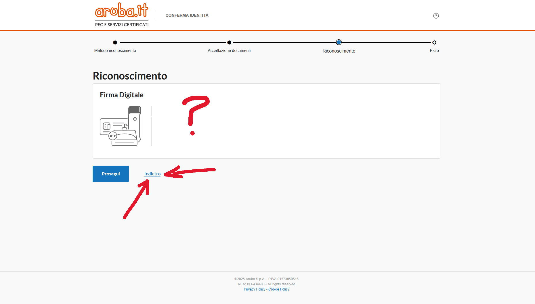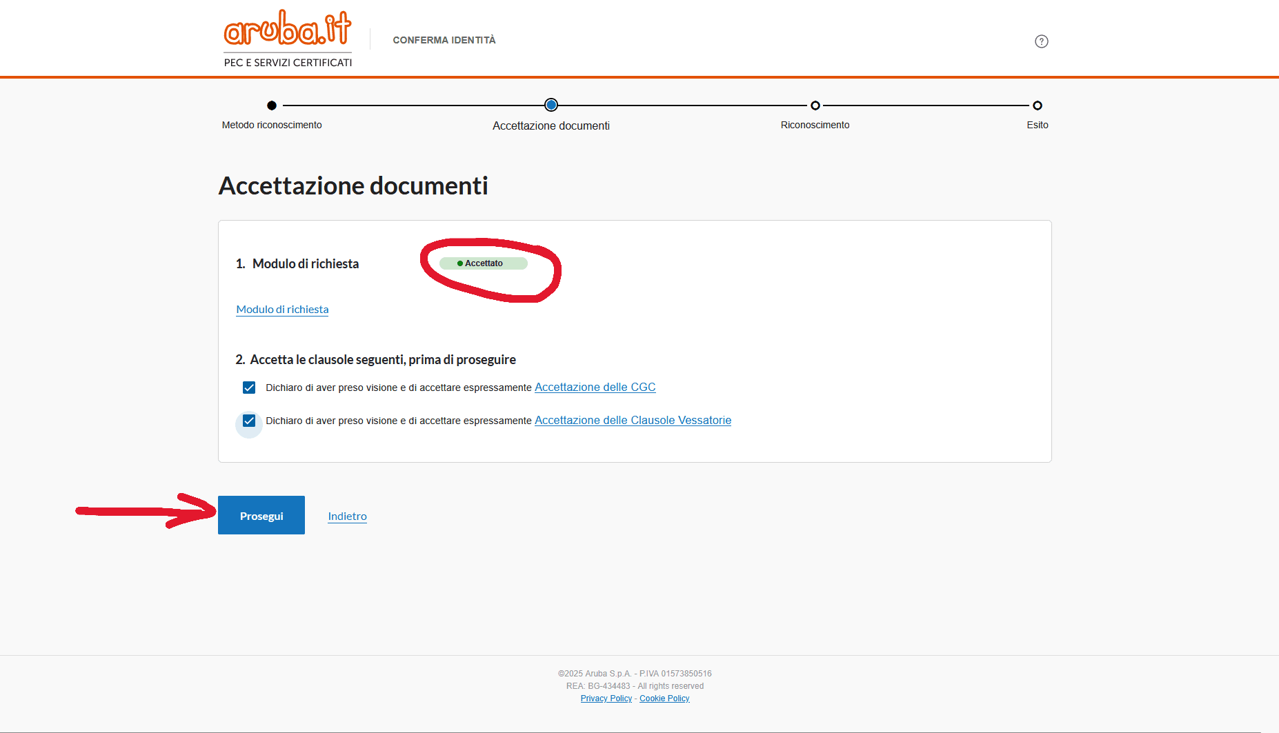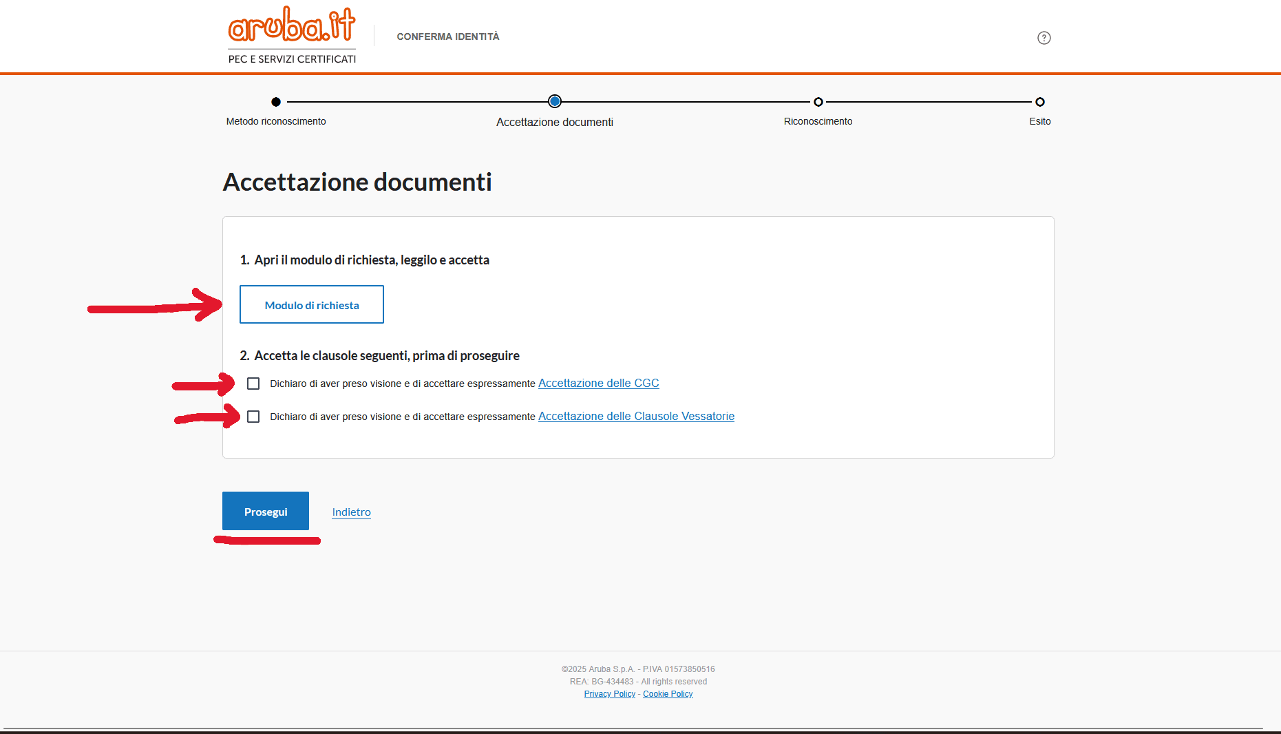 - la copia di cortesia del modulo di richiesta Aruba (solo tenerlo in archivio, non va firmato).