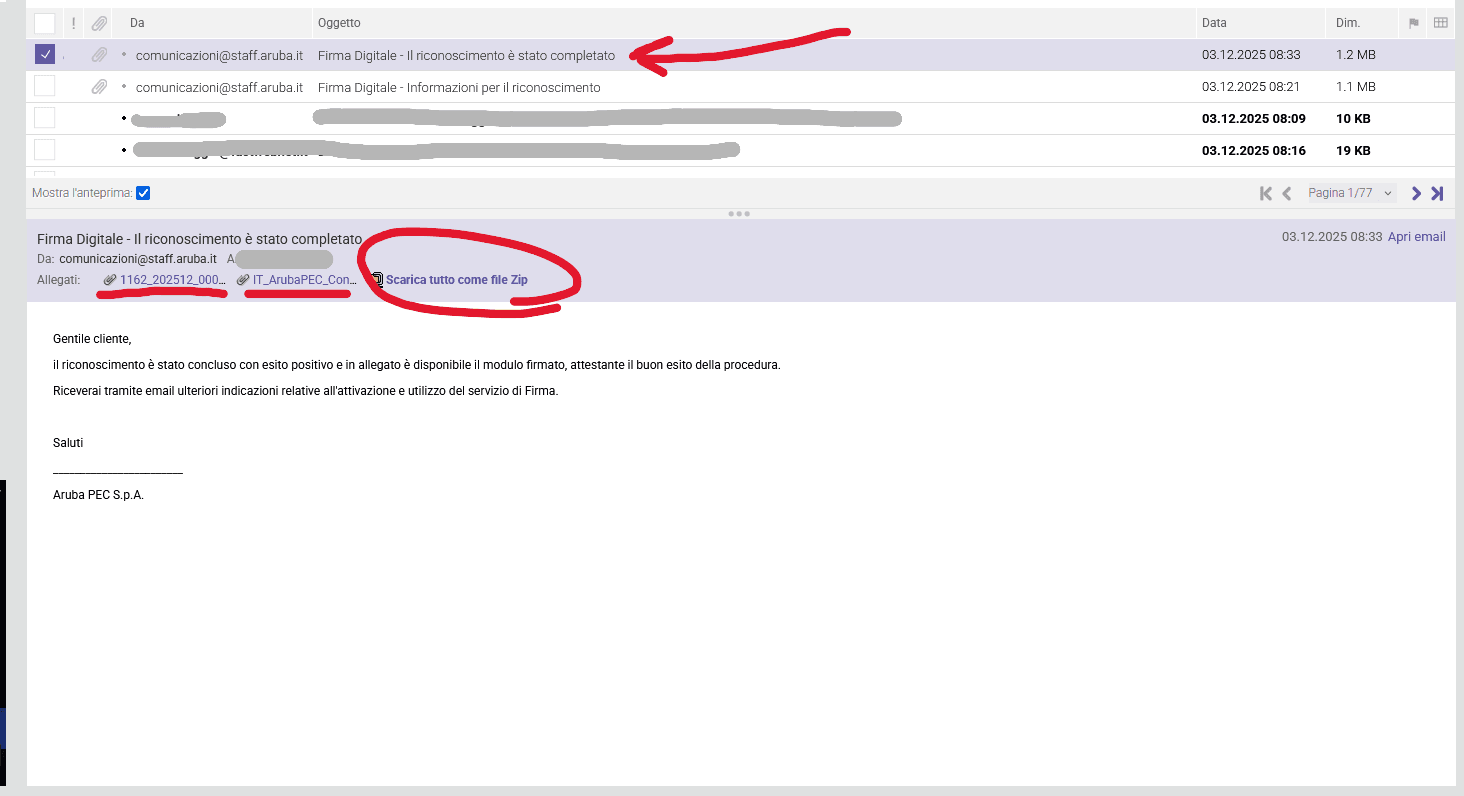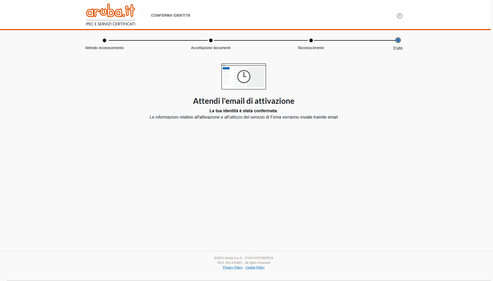 Se ora controlli la tua casella email, vedrai che te ne è arrivata una nuova, da Aruba, che ti conferma che hai completato il riconoscimento.