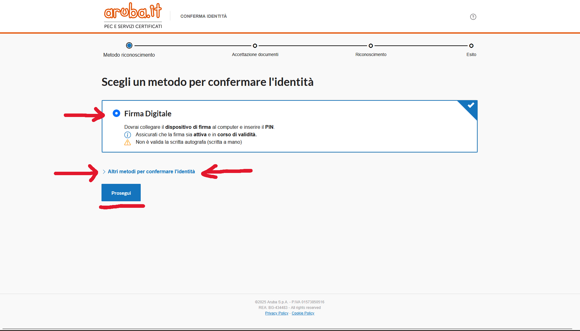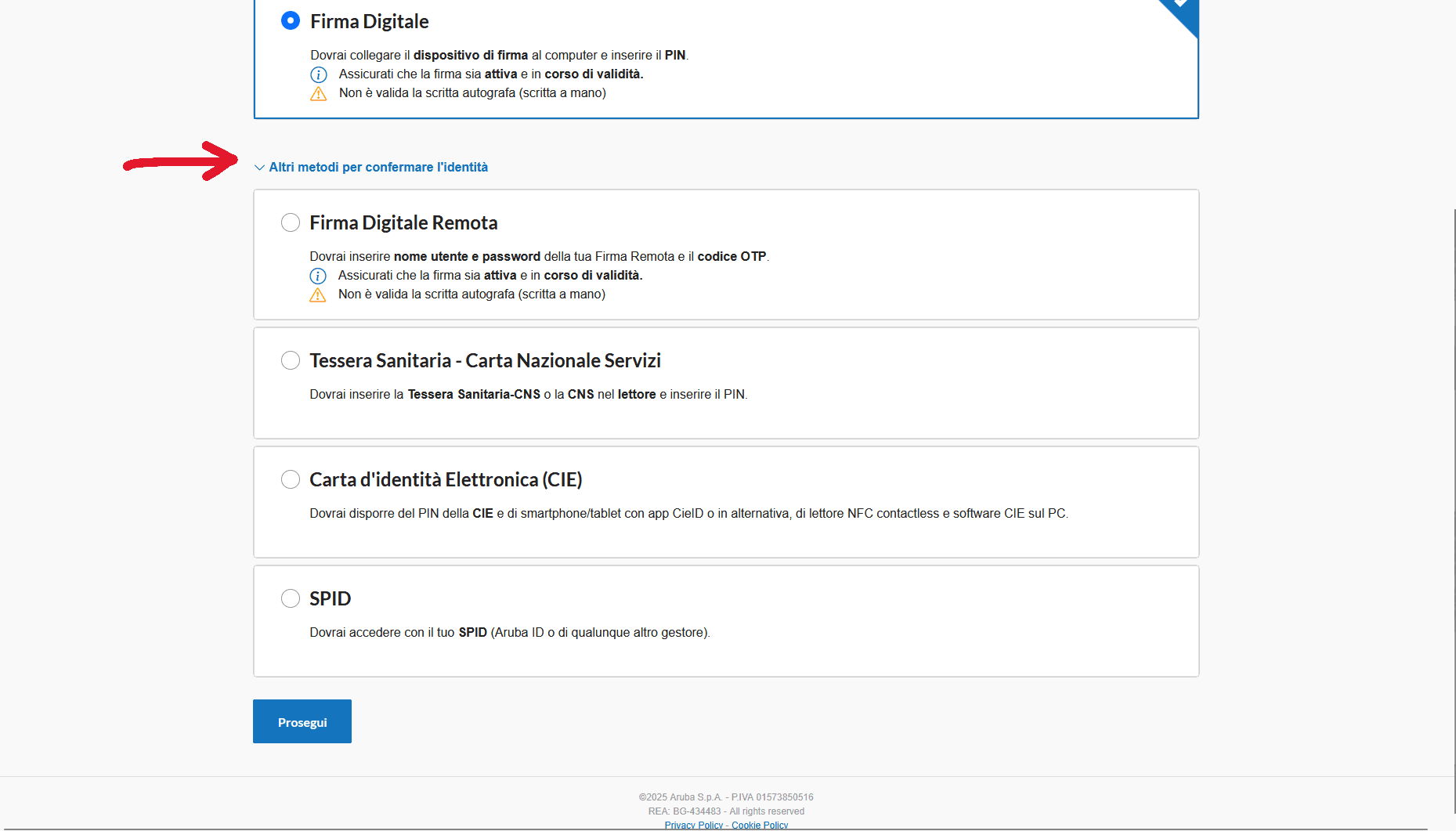 La firma digitale è già selezionata, se ti va bene clicca su "Prosegui" e passa direttamente al punto 4.
