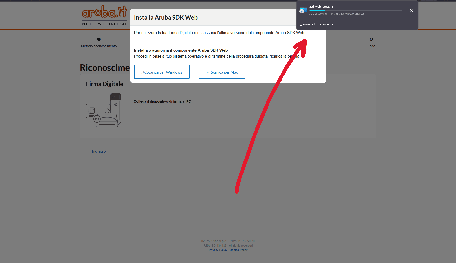Qui devi scaricare e installare Aruba SDK un piccolo software, necessario.